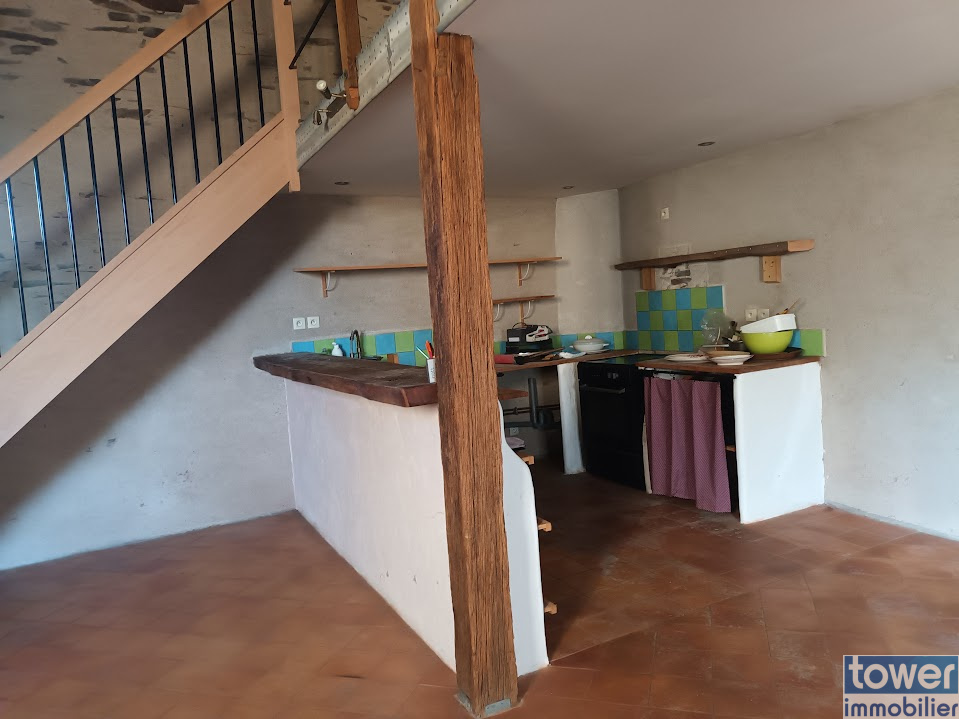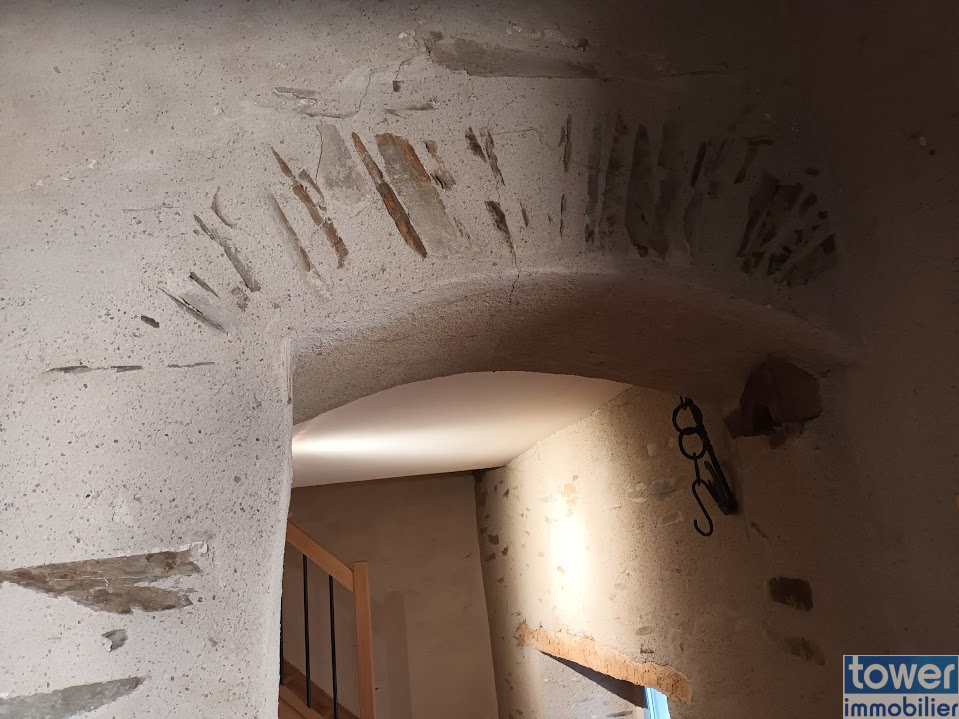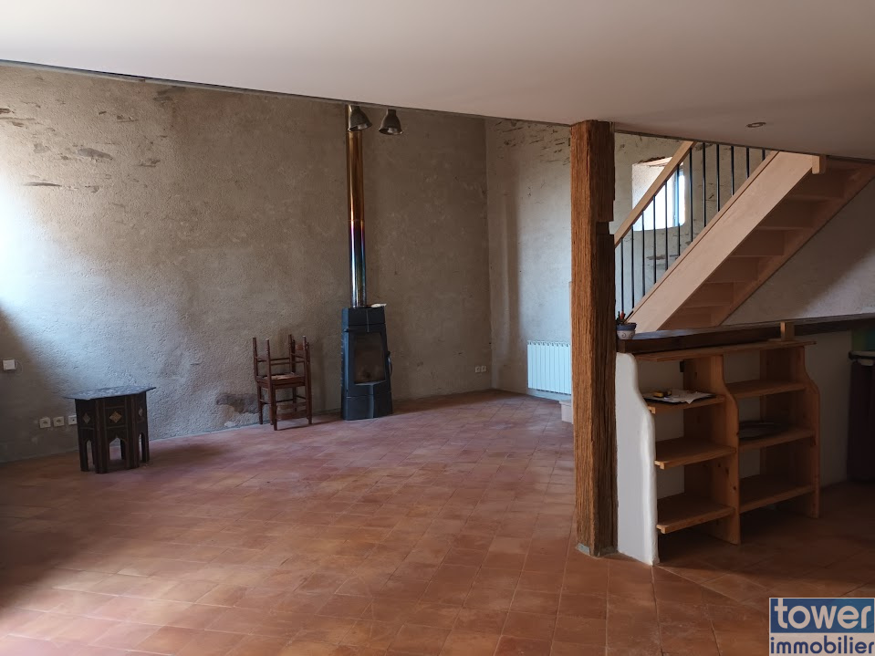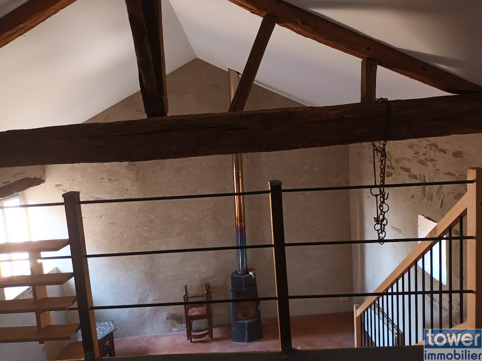 Grande maison de village 130m2, 2 étages, plein sud, en pierres, entièrement restaurée avec le cachet de l'ancien: poutres, pierres apparentes.