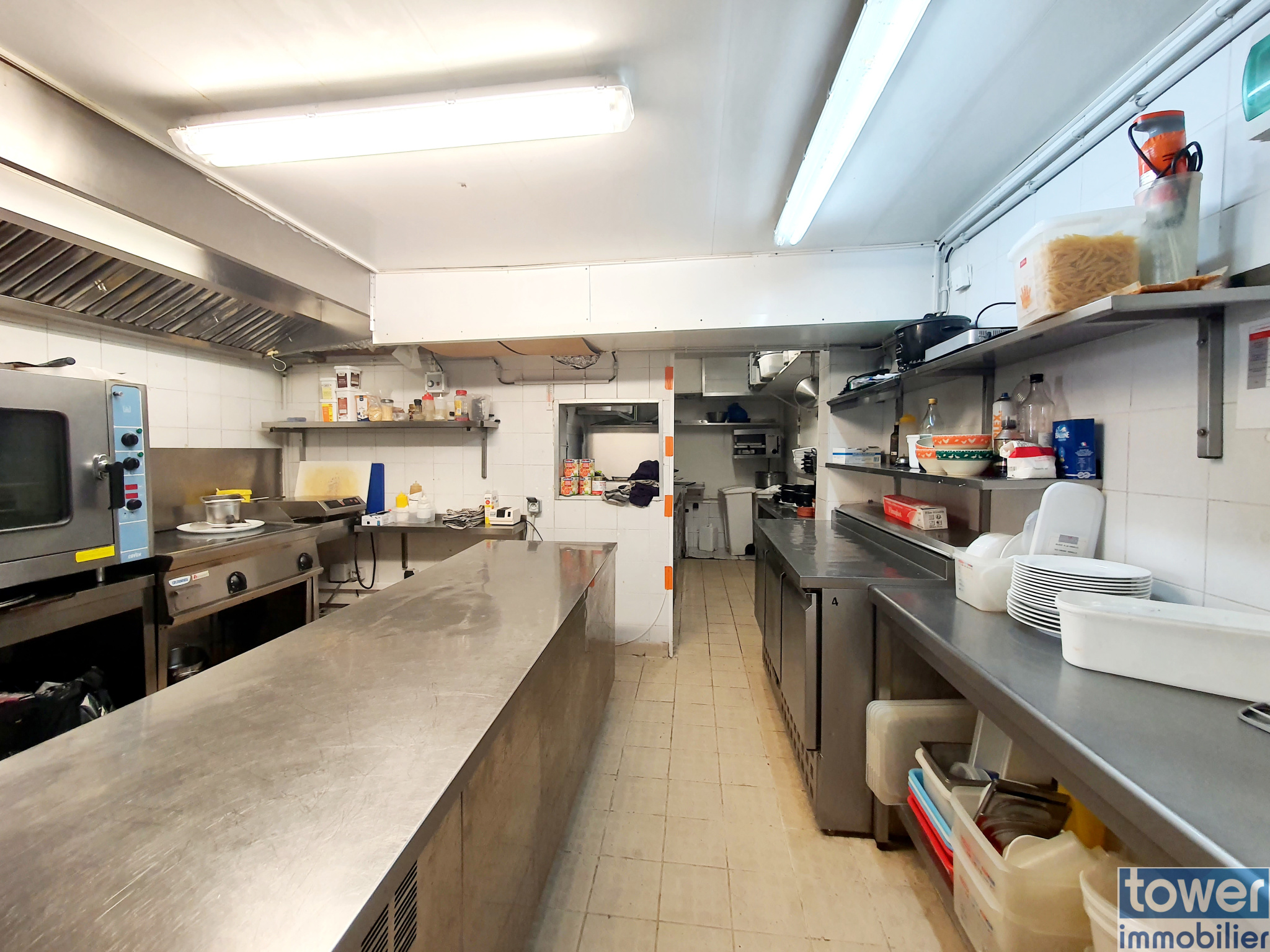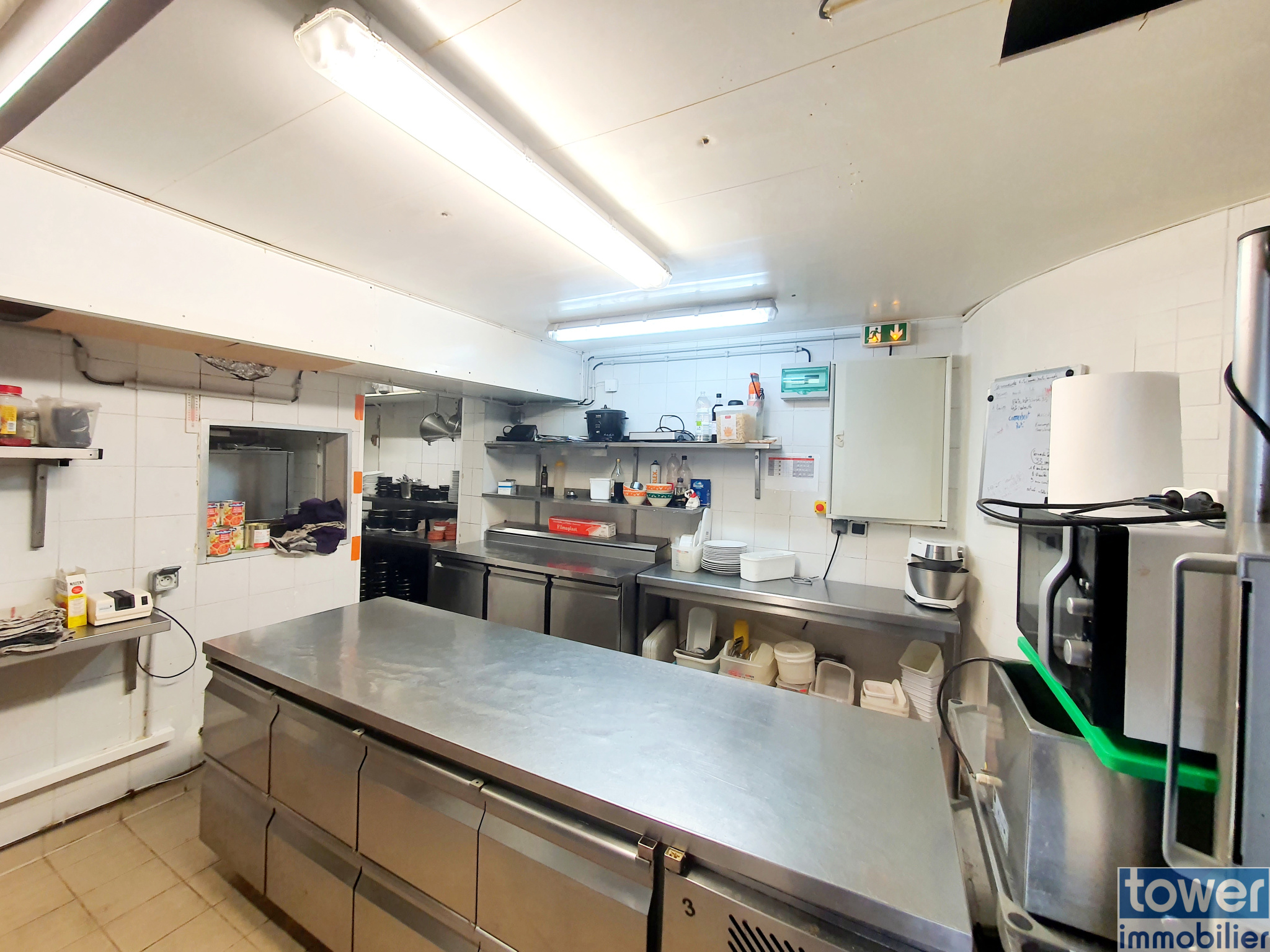 Cuisine professionnelle équipée, bar ouvert sur une salle climatisée, stockage à l’étage, et terrasse sous droit communal.Loyer : 2 400 € HT (incluant 130 € de taxe foncière). Bail 3/6/9 tout commerce.