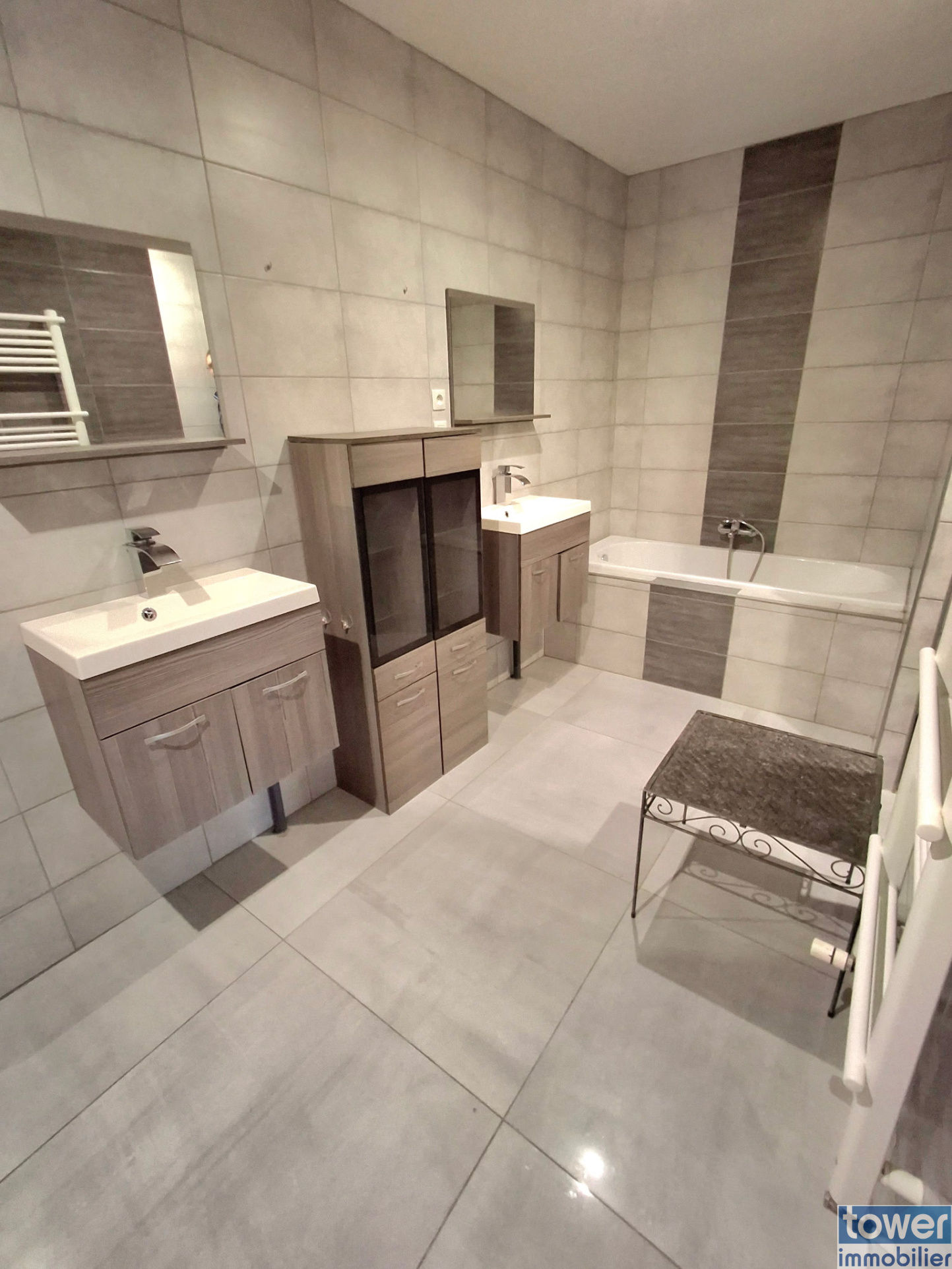 On y retrouve également une salle de bain de 9M² avec baignoire,douche italienne et double vasque et séche serviette.