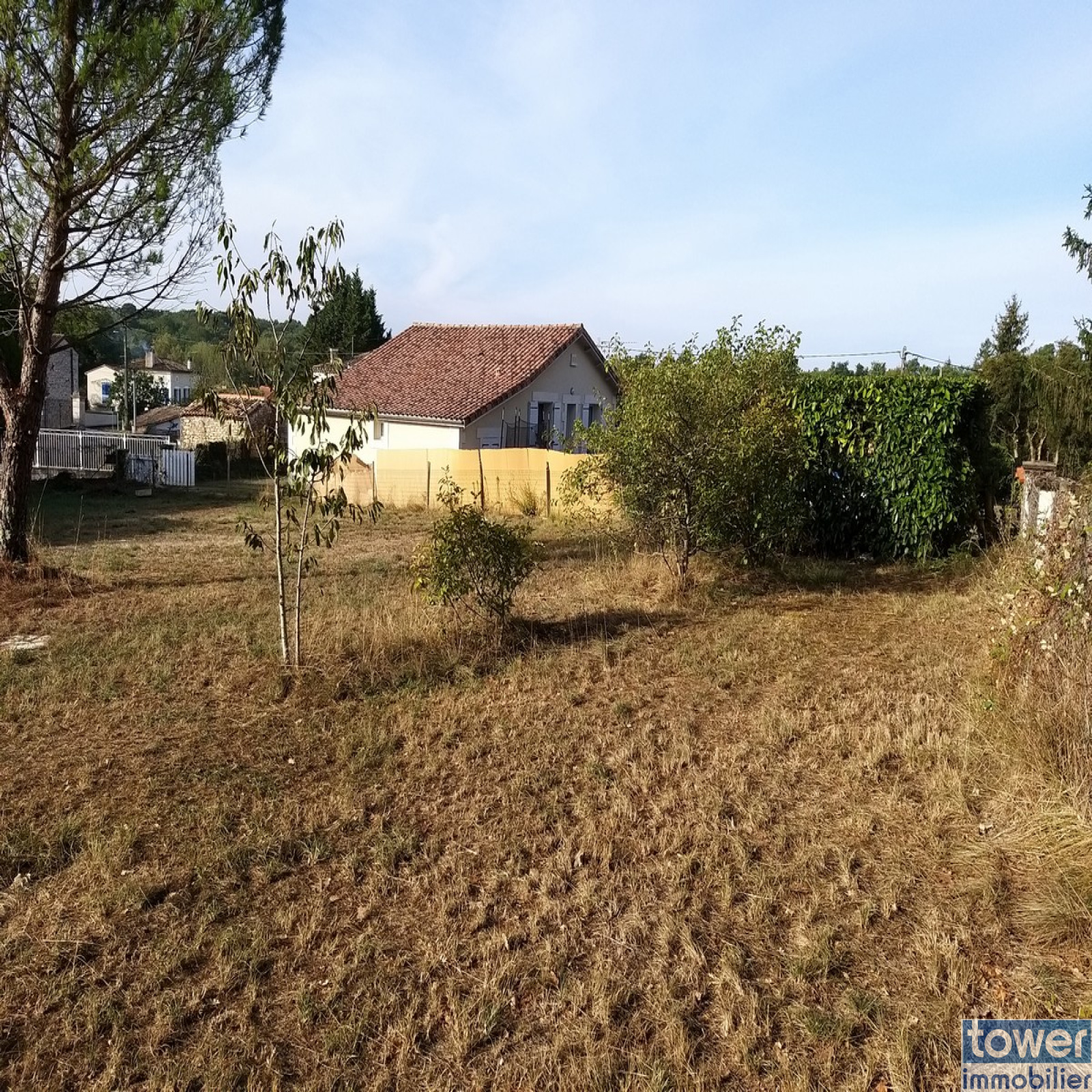 Le terrain entièrement borné, est entouré de haies sur 2 cotés et d'une clotûre sur les 2 autres bordures.