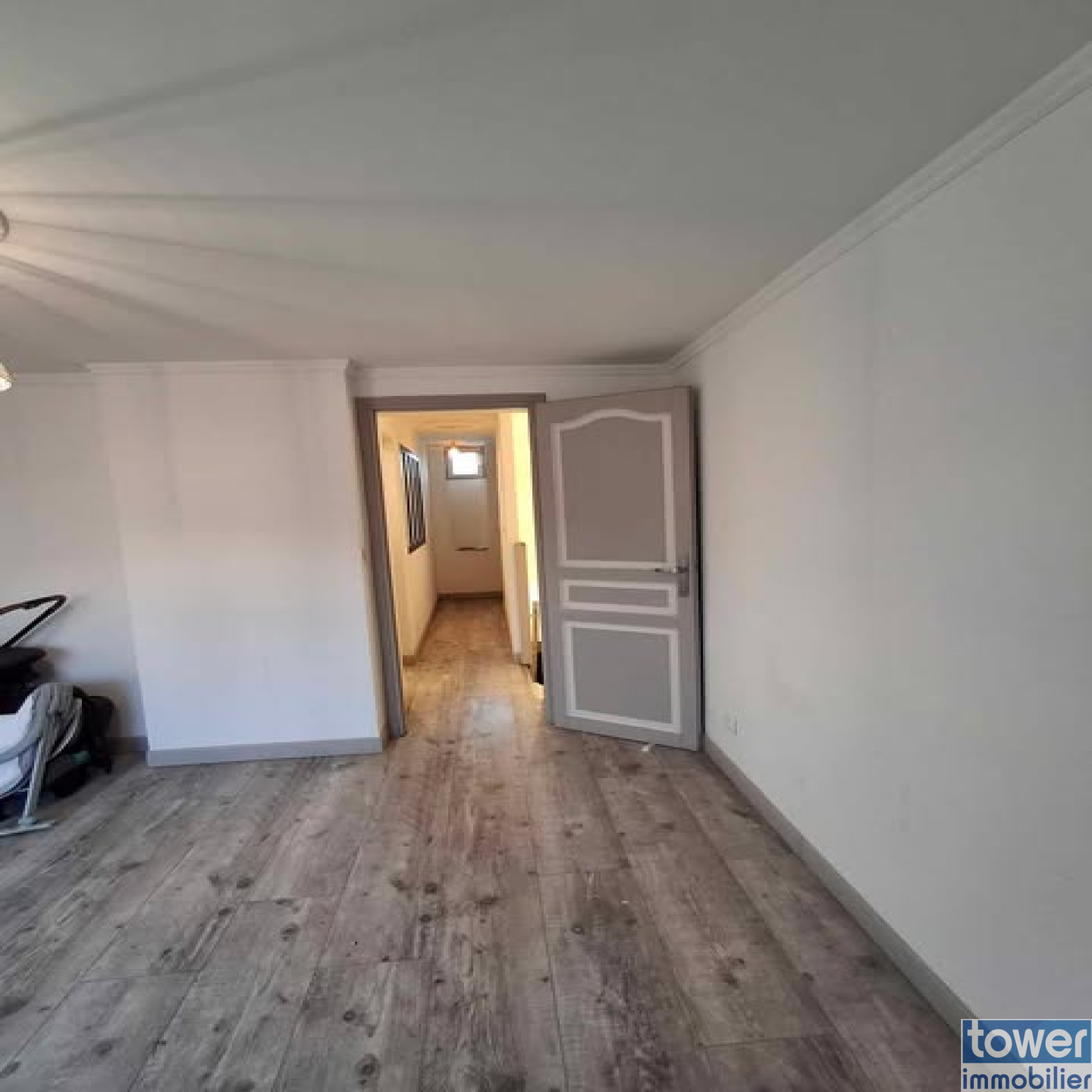 Une pièce passante pouvant servir de bureau ou d’espace de rangement