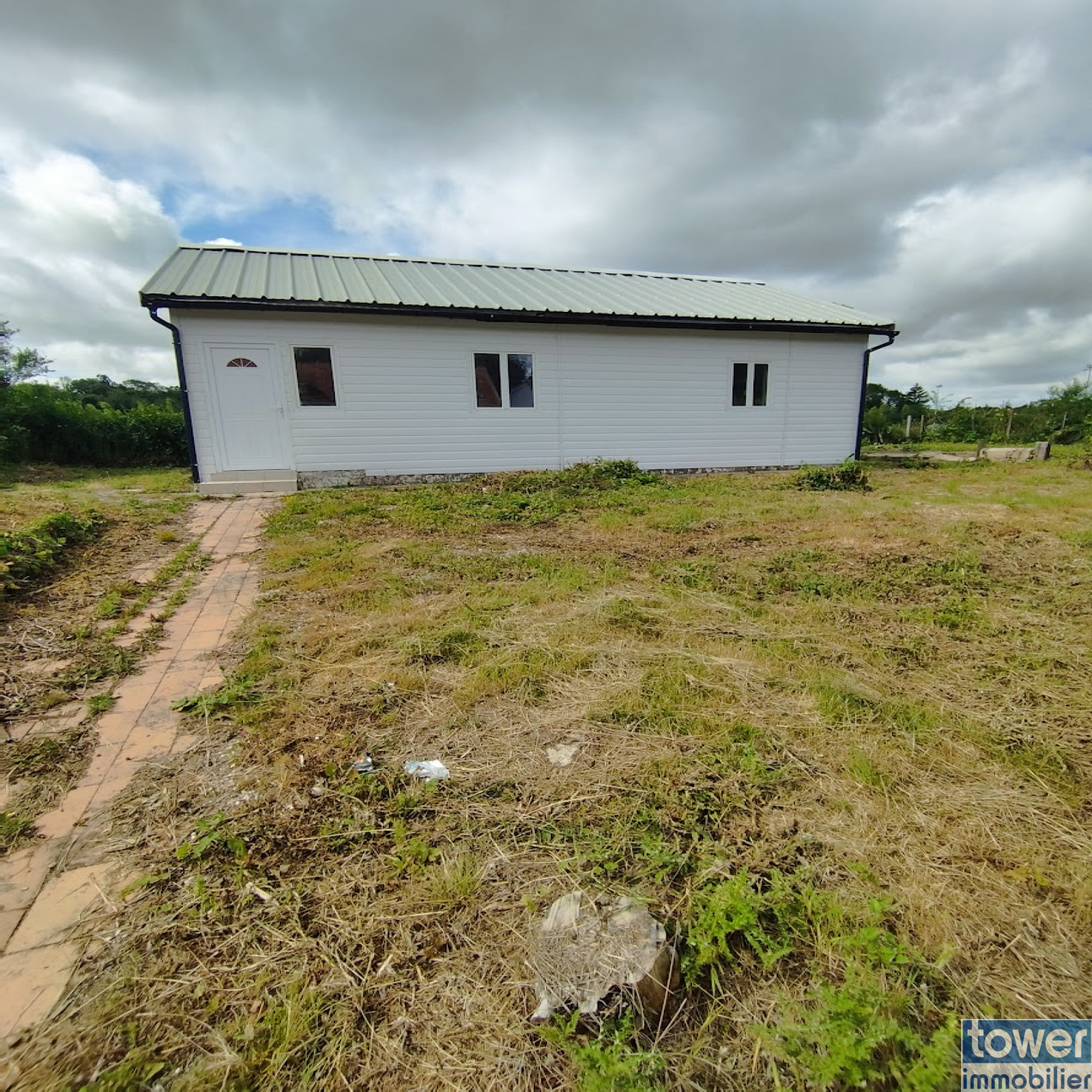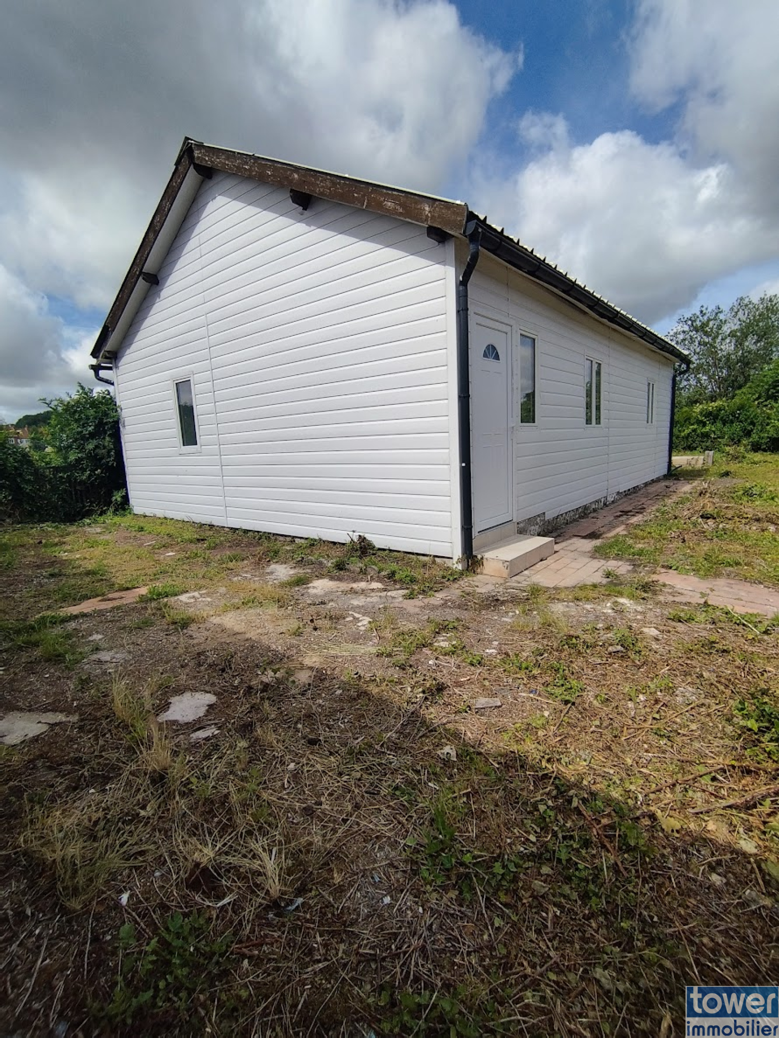 Le terrain, recouvert de pelouse, comprend plusieurs dépendances, idéales pour du rangement ou de futurs aménagements.