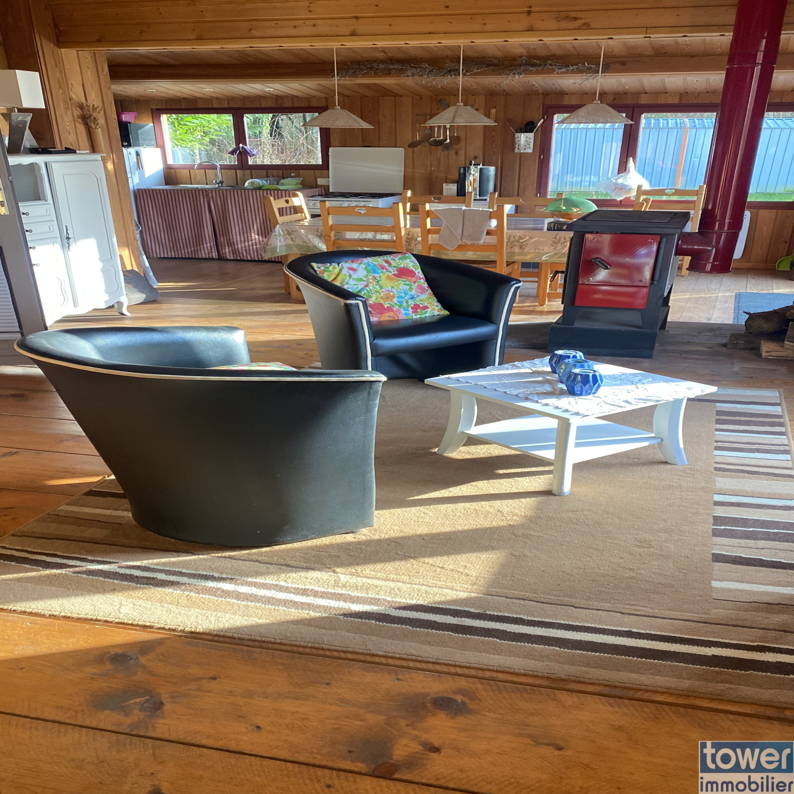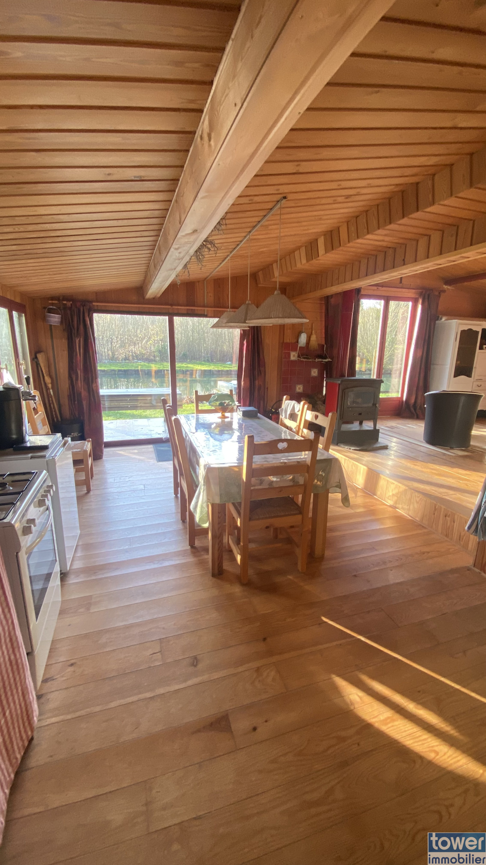 Le chalet de 74 m² propose une pièce de vie conviviale, une cuisine équipée ainsi qu’une salle de bain avec douche et WC. Raccordé à l’eau et à l’électricité, avec un assainissement individuel conforme, il peut être occupé toute l’année selon vos projets.