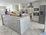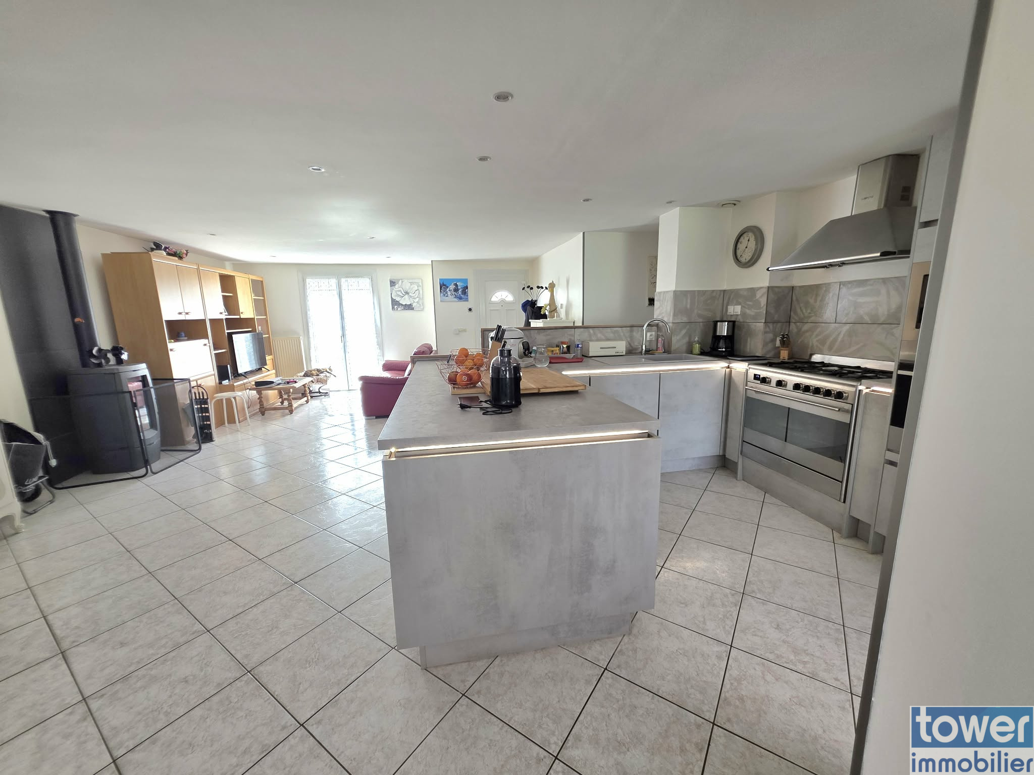 Dès l’entrée dans la maison, vous accédez directement à un bel espace de vie comprenant un grand salon, une cuisine ouverte entièrement équipée ainsi qu’une spacieuse salle à manger, formant un ensemble convivial et fonctionnel.